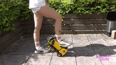 Sneakergirls sind gnadenlos, wenn es um Crushing geht. Das Spielzeugauto wird von dem Sneakergirl grausam zertrampelt. Es knackt und kracht unter ihren Sneakern und die Einzelteile fliegen nur so durch die Gegend. Nichts bleibt mehr übrig von dem Spielzeugauto. Wie eine Gigantin stampft sie auf dem Auto herum und bringt deinen Loserschwanz zum Tropfen. Unter den Füßen deiner Herrin wird alles gnadenlos zerstört. So fickt sie auch deinen mickrigen Verstand und verpasst dir damit einen harten Brainfuck. Crushing hat dich hypnotisiert.